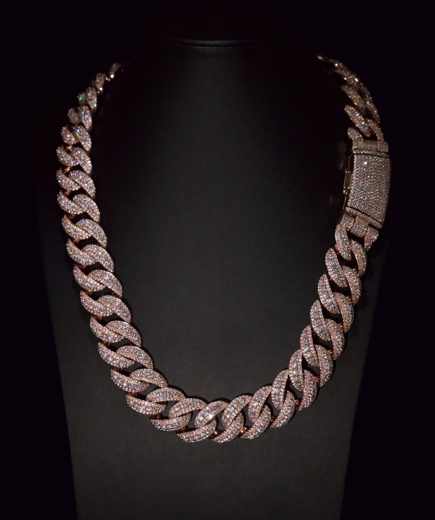 Iced London 20mm Raised Pointer Cuban er det ultimative statement of power. Hvert overdimensioneret led er håndbesat med VVS-klarhedssten med en hævet klinge, der maksimerer lysrefleksionen fra alle vinkler.