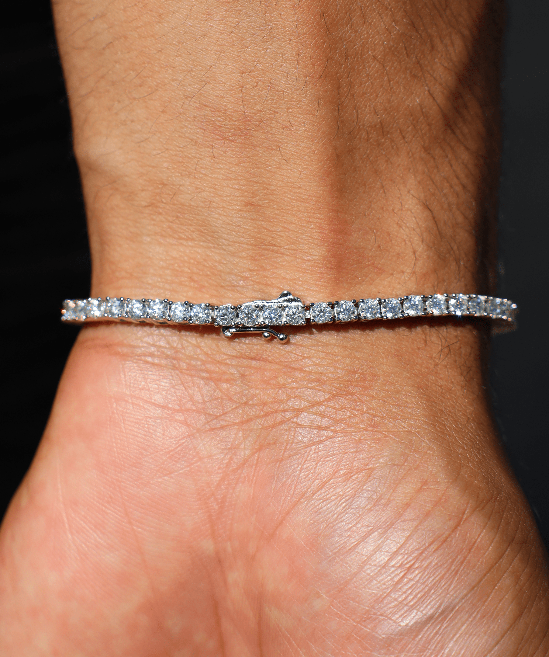 ICED LONDON 4mm tennisarmbåndet er designet til dem, der værdsætter ren, raffineret luksus. Hver sten er sat i massivt 925 sølv og leverer enestående klarhed og glans. Det klassiske design sikrer alsidighed, uanset om det bæres alene eller i lag. Det er færdiggjort med en kasselås og sikkerhedslås for en sikker pasform.