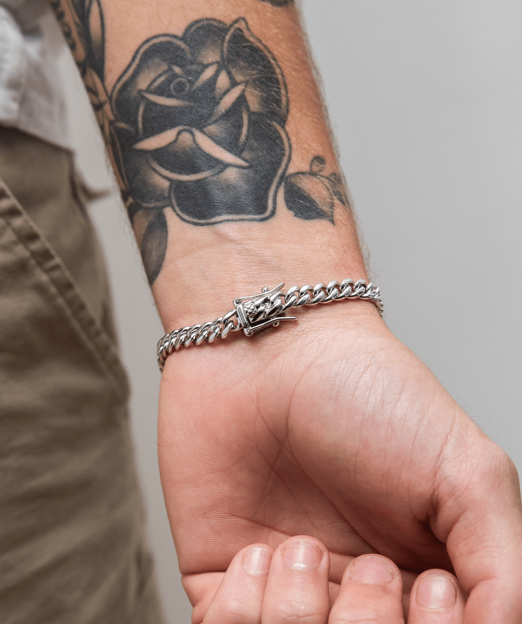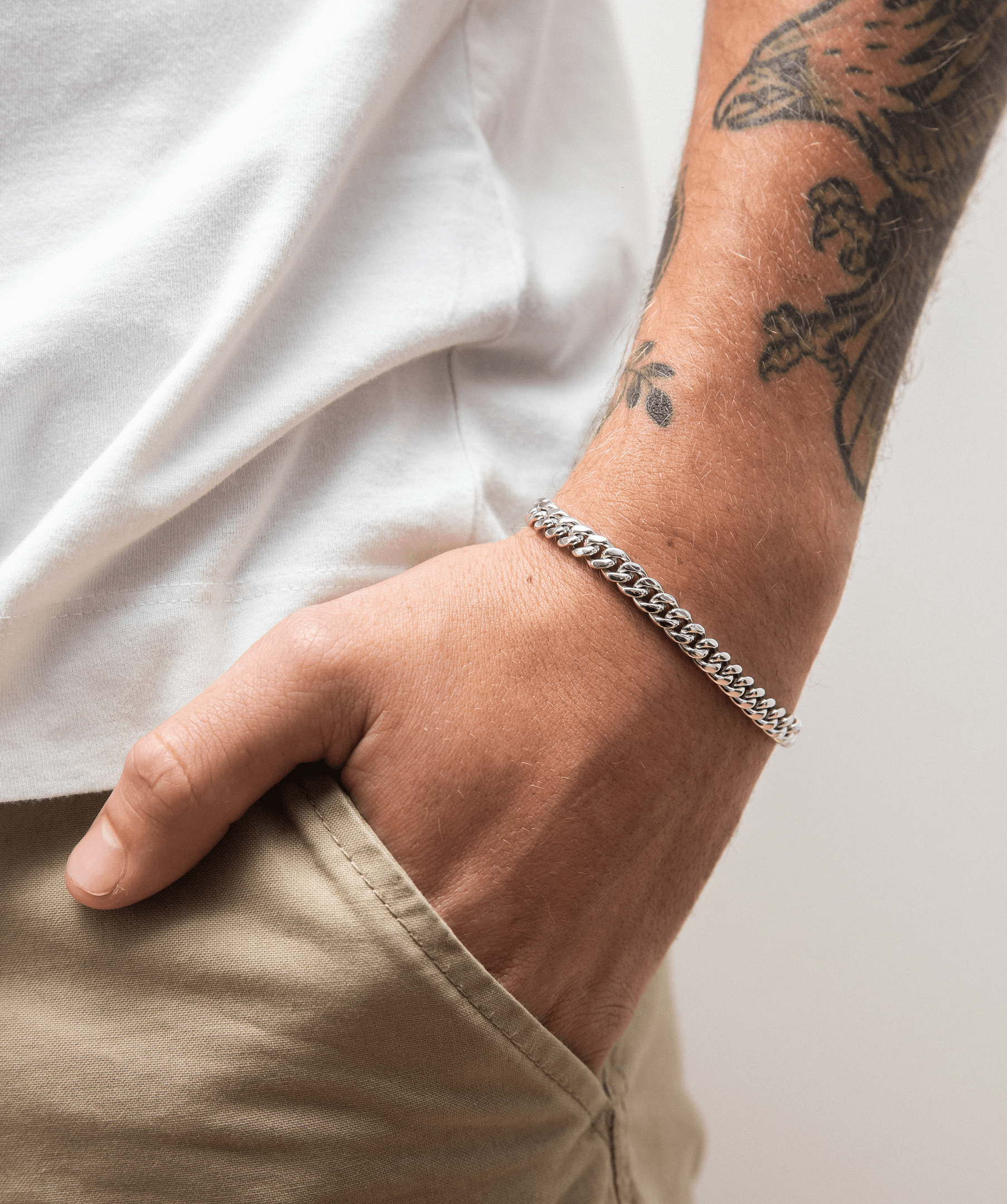 Our 6mm Cuban Link Bracelet delivers clean, understated style with durability you can trust for everyday wear. Crafted from 316L stainless steel and finished in a thick layer of Rhodium, it’s designed to keep its shine through whatever the day throws at you. Lightweight, resilient, and always ready to stack or stand alone.
