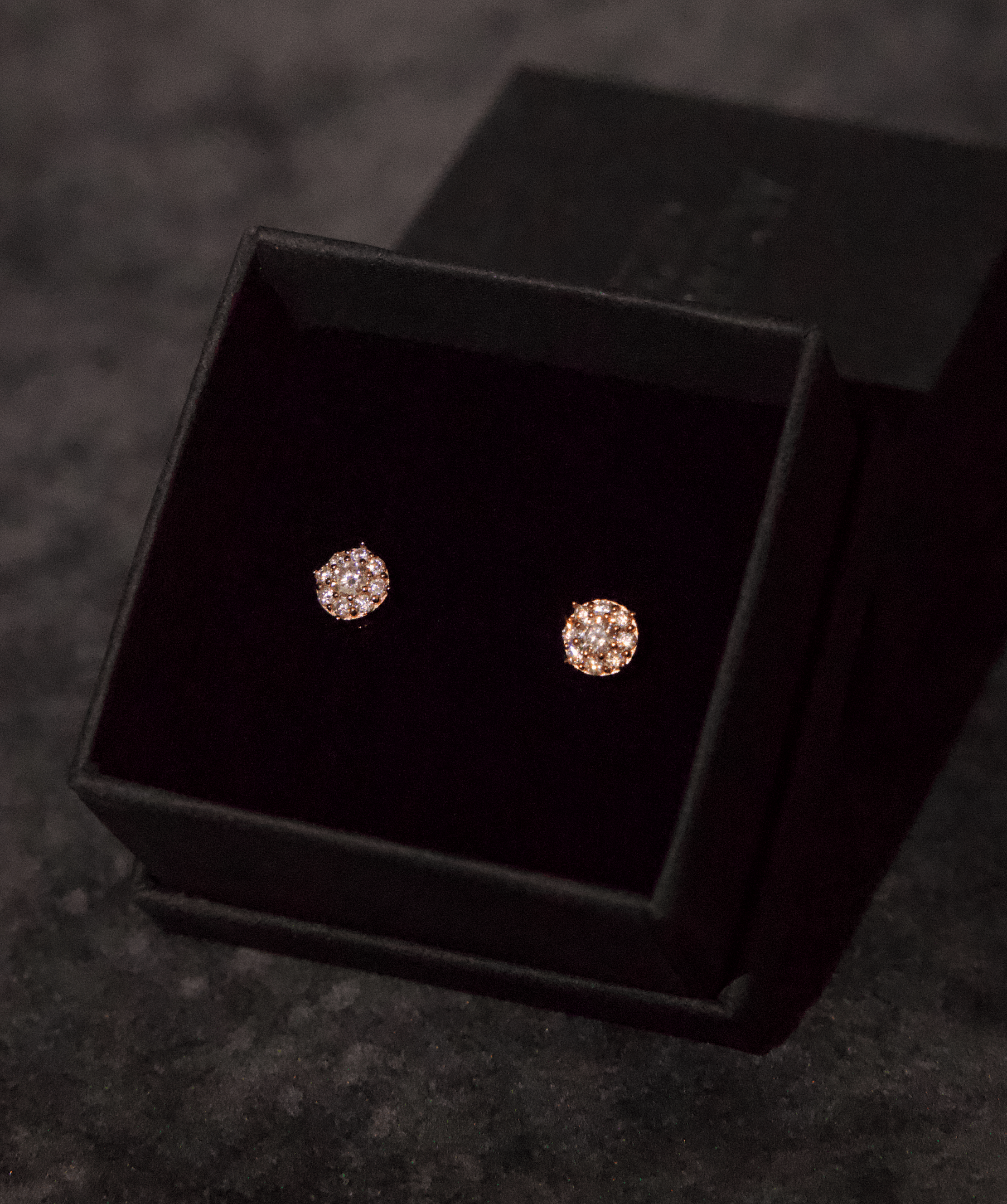 ICED LONDON Cluster Stud Earrings forener præcision og udstråling. Designet med en klynge af VVS Moissanite-sten, maksimerer hver ørestik glansen i en elegant, kompakt form. Fremstillet af 925 sølv og afsluttet med en rosaforgyldning, tilbyder de en varm, luksuriøs nuance med langvarig holdbarhed. En subtil, men iøjnefaldende tilføjelse til enhver samling.