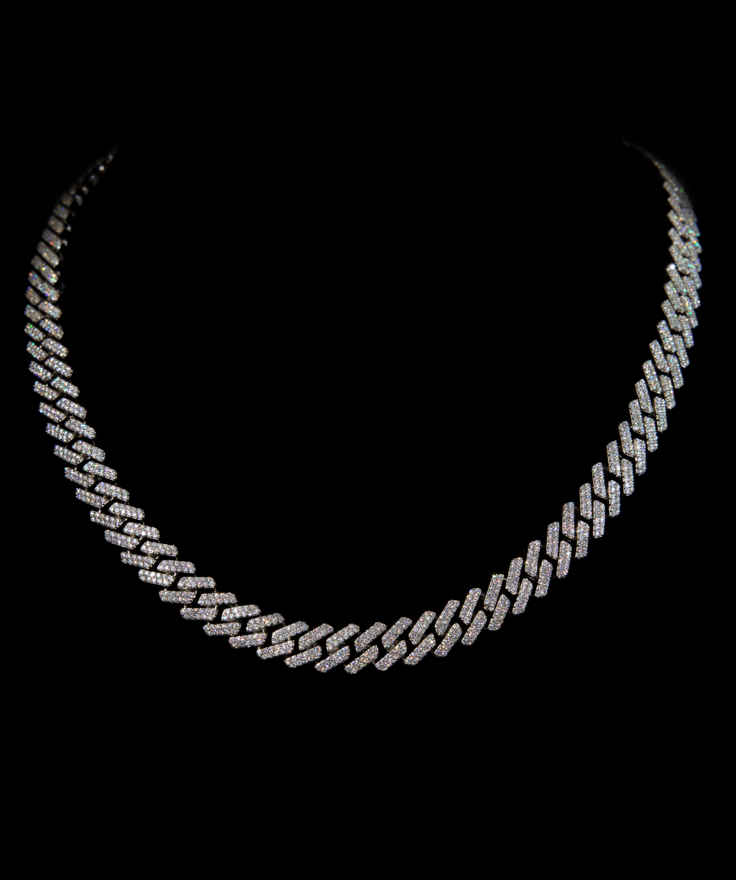 De 10 mm Cubaanse schakelketting combineert een strak profiel met compromisloze details. Volledig met VVS Moissanite vervaardigd, straalt elke schakel precisie en vakmanschap uit. Ontworpen om naadloos te schakelen tussen statement en subtiliteit, staat dit sieraad in elke collectie.