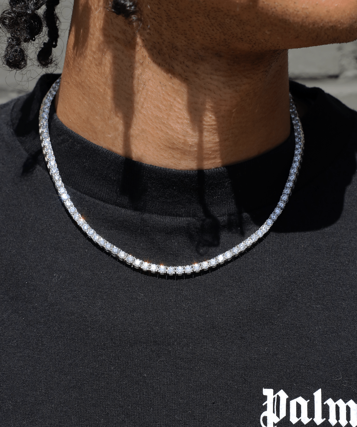 De ICED LONDON Tennis Chain is ontworpen voor liefhebbers van pure, verfijnde luxe. Gezet in massief 925 zilver, biedt elke VVS Moissanite steen een uitzonderlijke helderheid en glans. Het klassieke ontwerp zorgt voor veelzijdigheid, zowel los als in laagjes gedragen. Afgewerkt met een bakslot en veiligheidssluiting voor een veilige pasvorm.