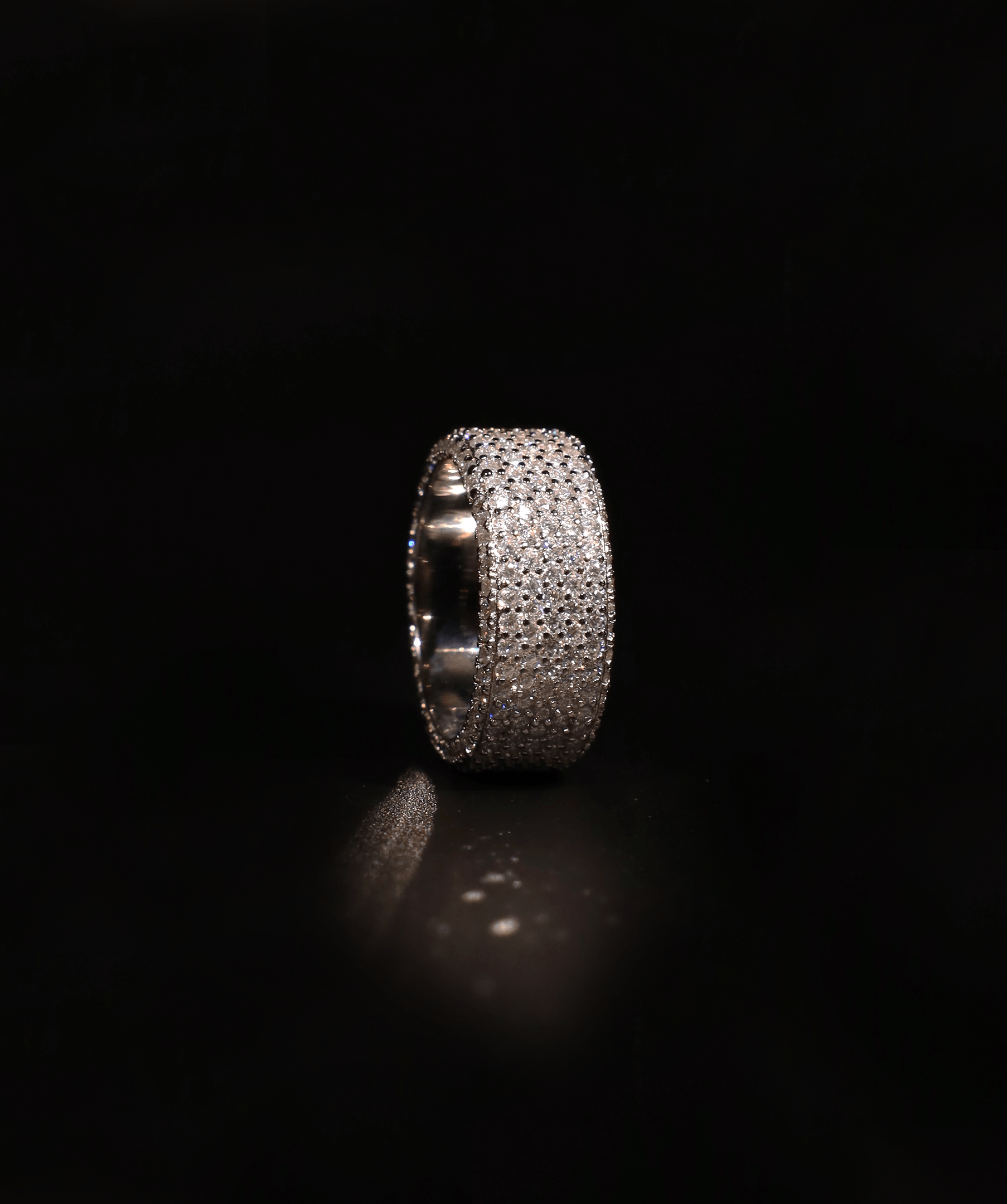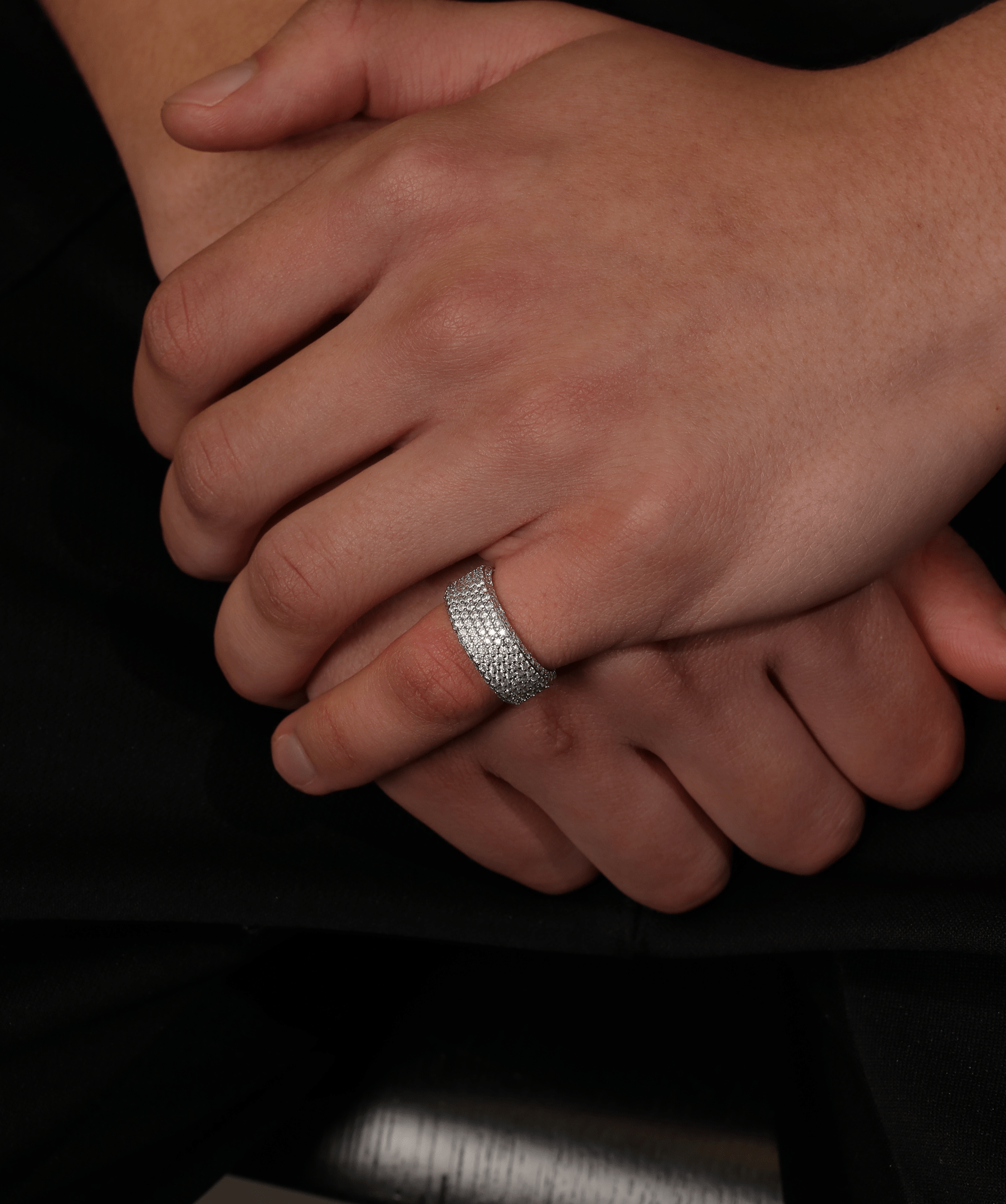 De Eternity Band Ring, vervaardigd om duurzaamheid en prestige te belichamen, is meer dan zomaar een sieraad – het is een uiting van verfijning en onderscheid. Elke steen is zorgvuldig gezet om een ononderbroken symfonie van schittering te creëren, waardoor het licht moeiteloos over het oppervlak danst. De royale breedte van 9 mm creëert een krachtige aanwezigheid aan de vinger en vormt de perfecte balans tussen durf en verfijning. Ontworpen voor wie precisie en vakmanschap waardeert, draagt dit sieraad de kenmerkende ICED LONDON-gravure aan de binnenkant, een discreet teken van exclusiviteit. Of u het nu alleen of gestapeld draagt, het blijft een onmiskenbaar symbool van status, smaak en het streven naar uitmuntendheid.