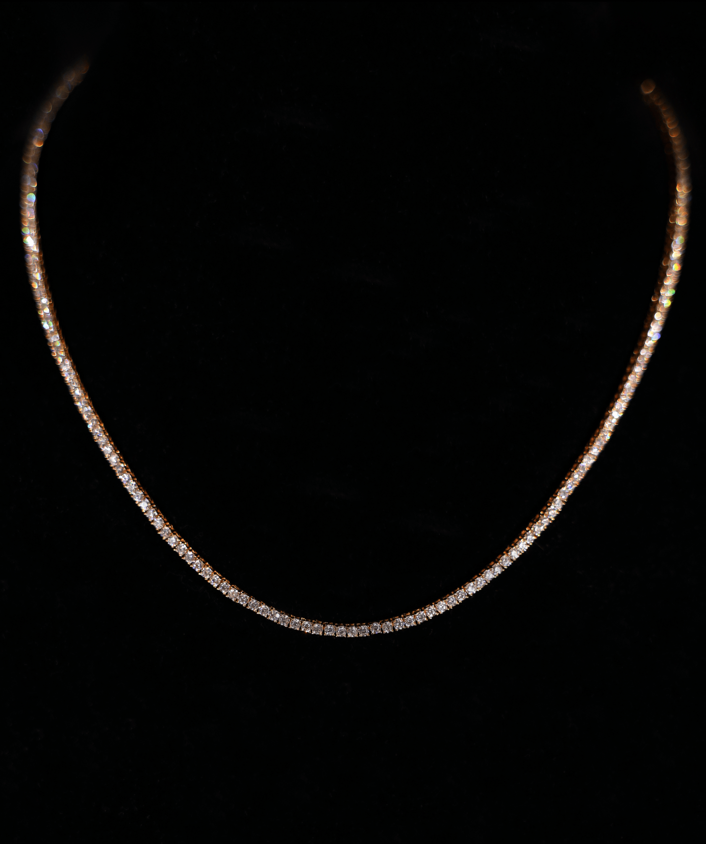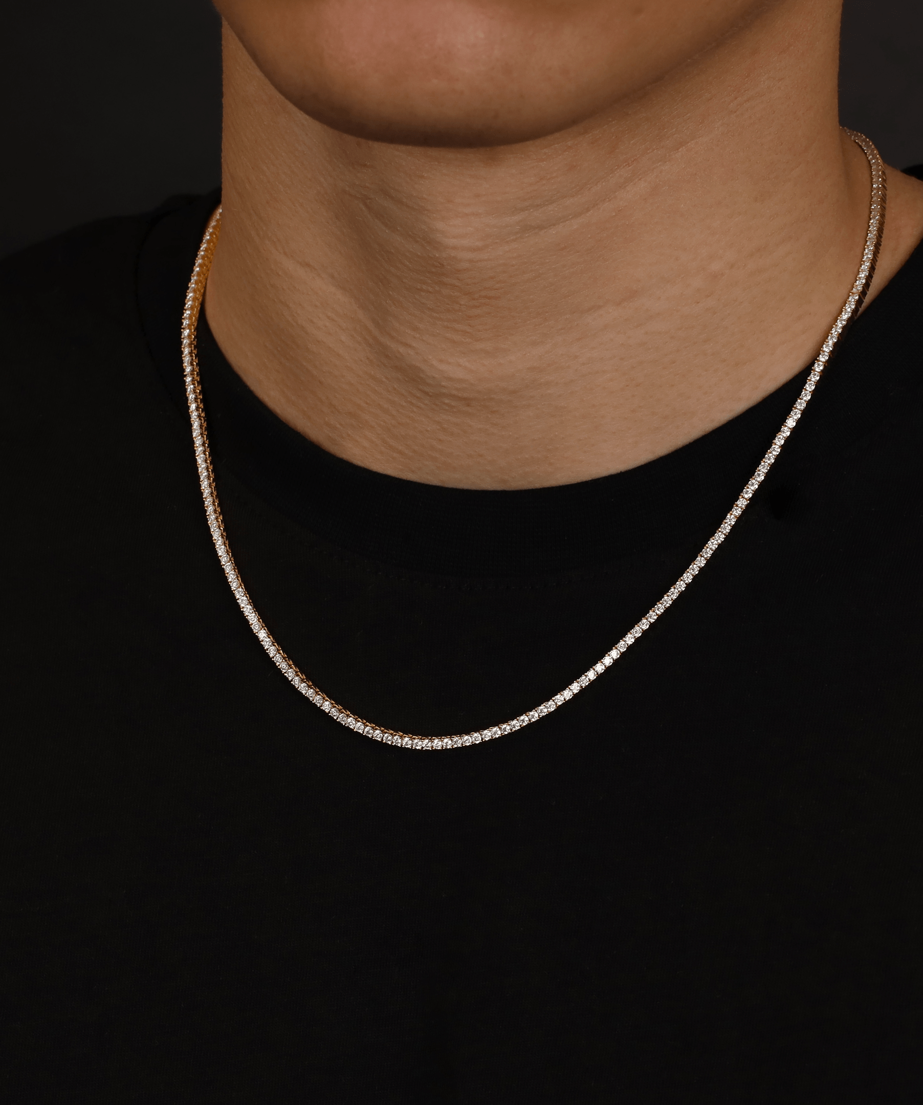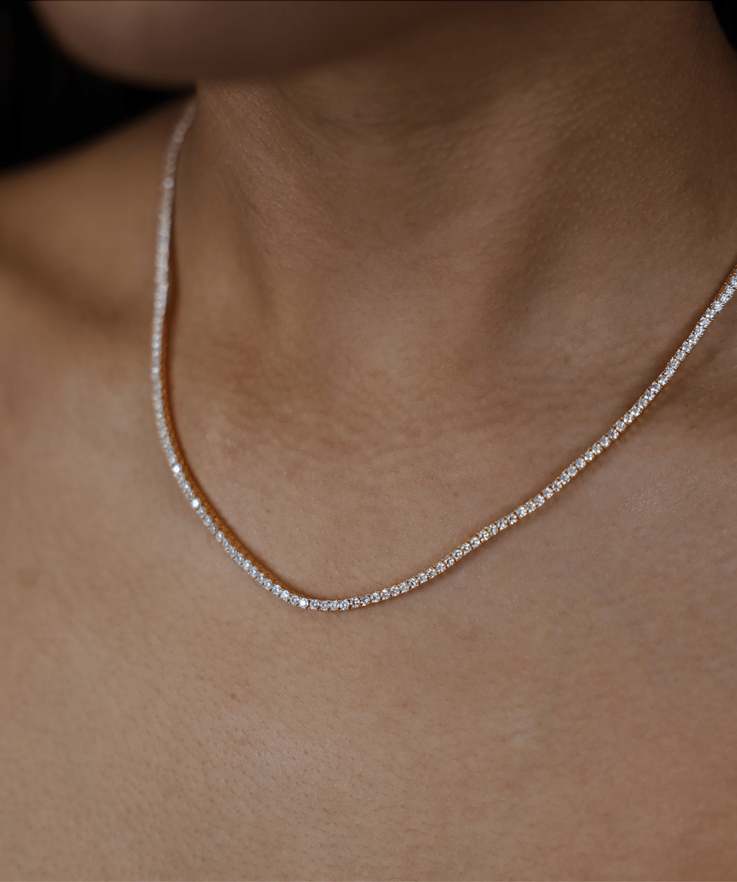 De microtennisketting verfijnt het klassieke ontwerp met een subtiel profiel van 2 mm, wat zorgt voor een strakke en ingetogen look met behoud van een hoge glans. Handgezette stenen creëren een vloeiende lichtstroom die de aandacht trekt zonder te overheersen. Lichtgewicht en veelzijdig, waardoor hij gemakkelijk te dragen is van dagelijks gebruik tot chique gelegenheden.