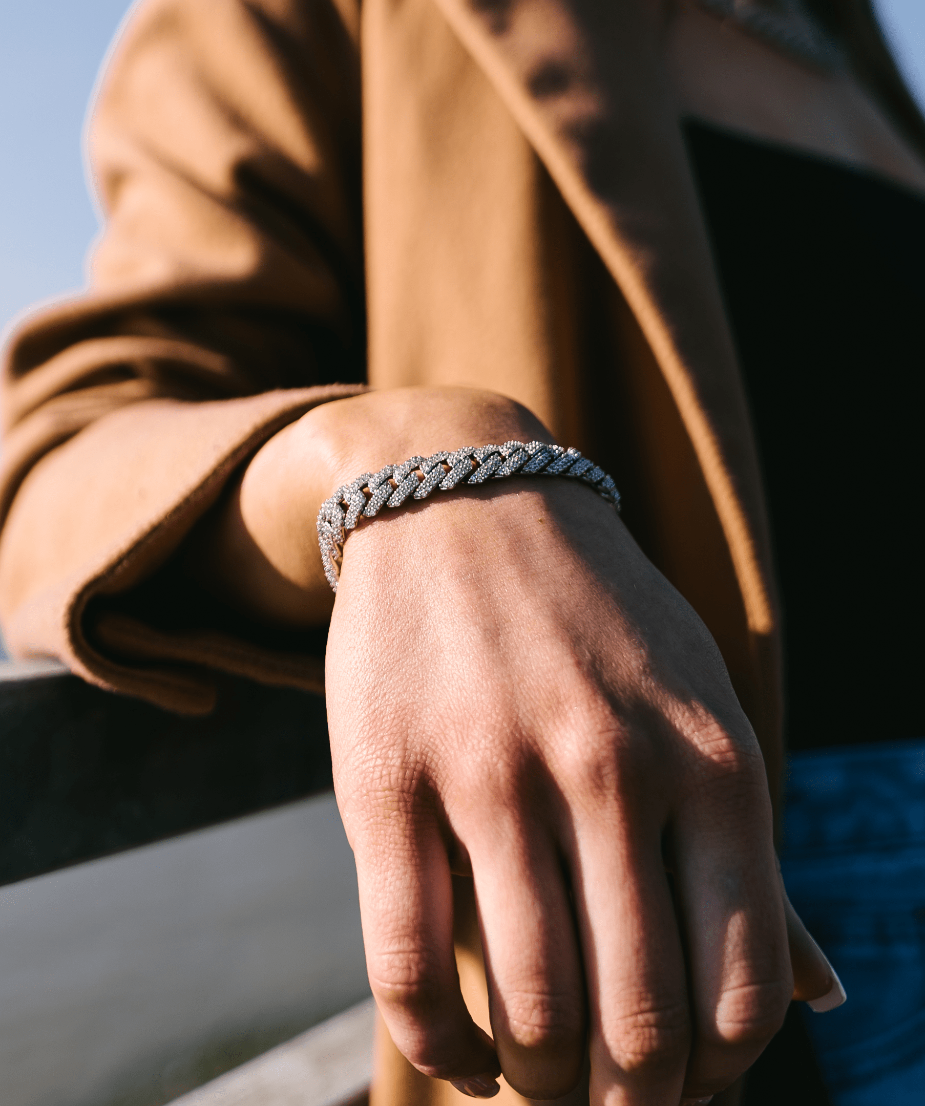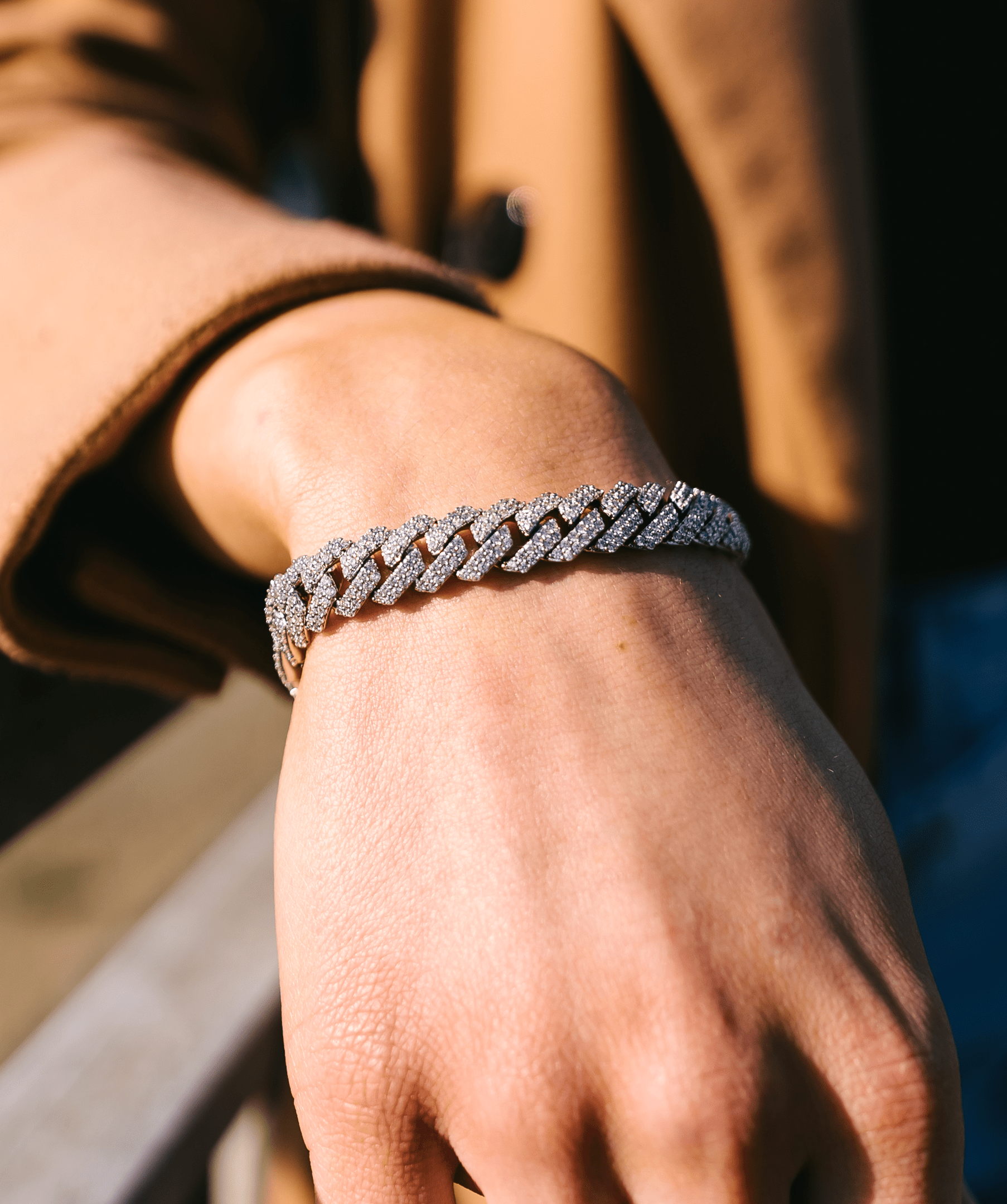 Our new and exclusive 10mm Diamond Prong Link Bracelet is the a must-have for your jewelry collection. Made using real 18k gold and fully iced out using the clearest round-cut stones in the game, this bracelet will reflect an unparalleled and near-blinding shine.