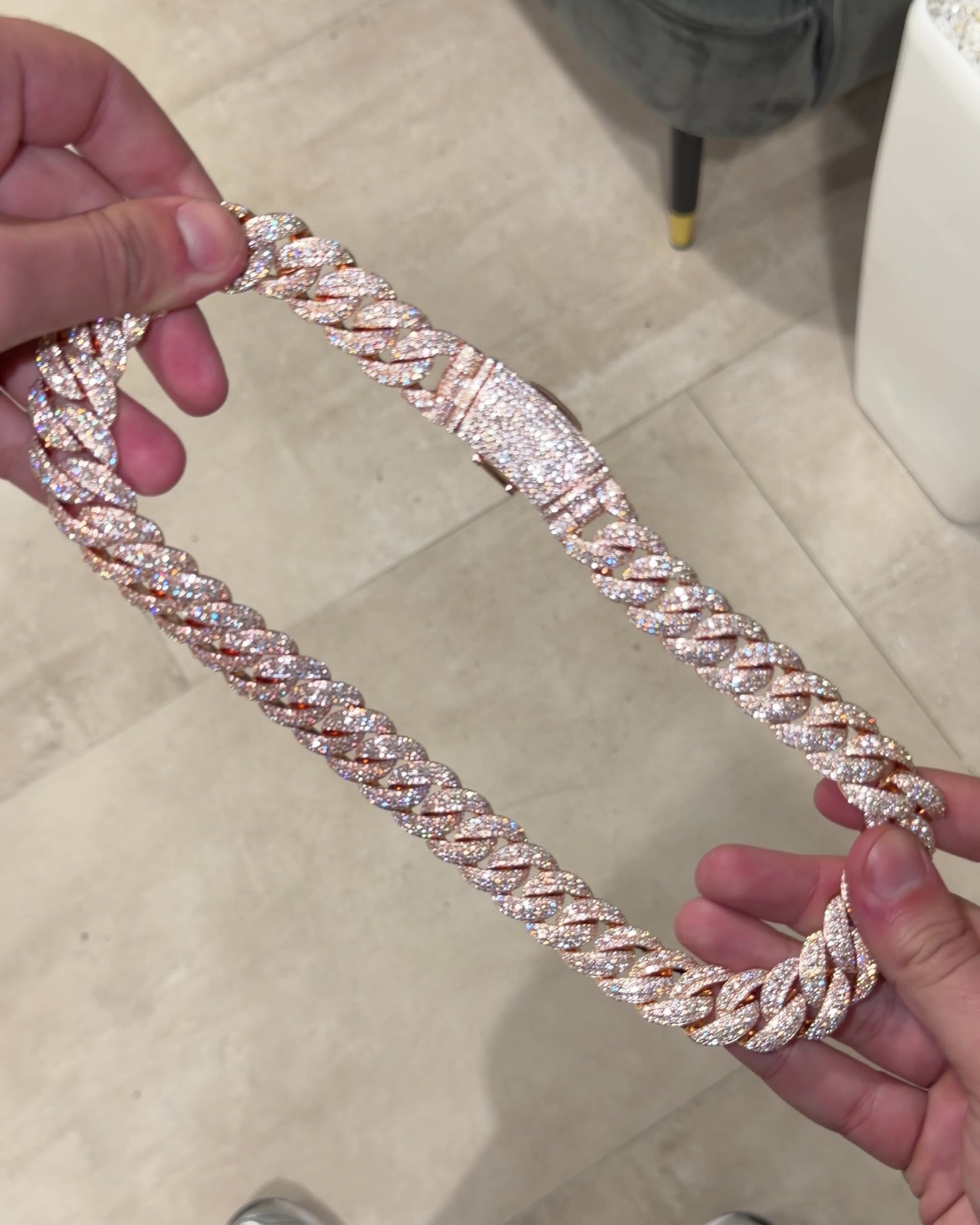 The Iced London 20mm Raised Pointer Cuban is the ultimate statement of power. Each oversized link is hand-set with VVS clarity stones, featuring a raised prong setting that maximises light reflection from every angle.