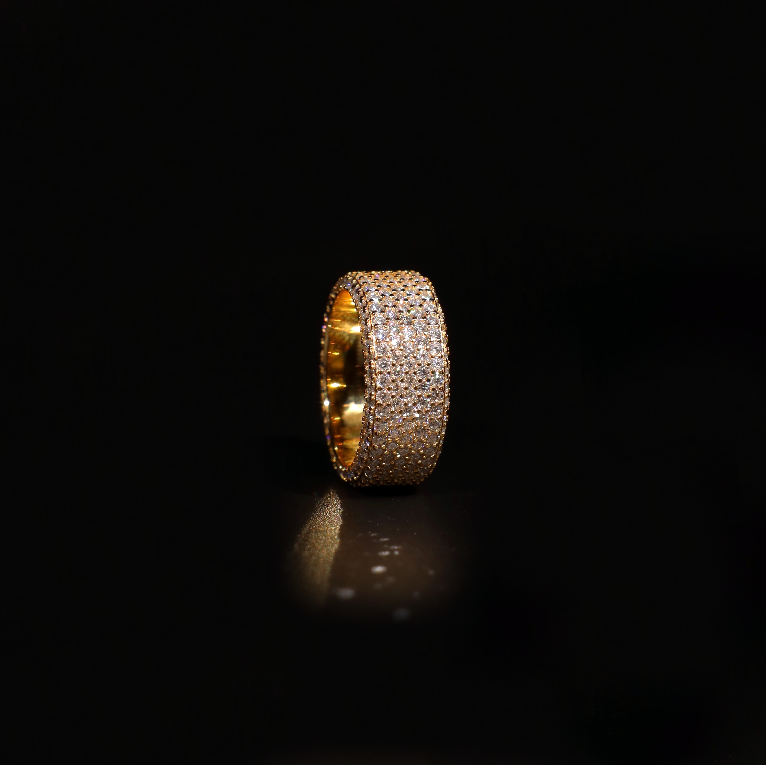 Crafted to embody permanence and prestige, the Eternity Band Ring represents more than just a piece of jewellery—it is a declaration of refinement and distinction. Every stone is meticulously set to achieve an unbroken symphony of sparkle, ensuring that light dances effortlessly across its surface. Its generous 9mm width creates a powerful presence on the finger, striking the perfect balance between boldness and sophistication. Designed for those who appreciate precision and craftsmanship, this piece carries the signature ICED LONDON engraving inside, a discreet mark of exclusivity. Whether worn alone or stacked, it remains an undeniable symbol of status, taste, and the pursuit of excellence.