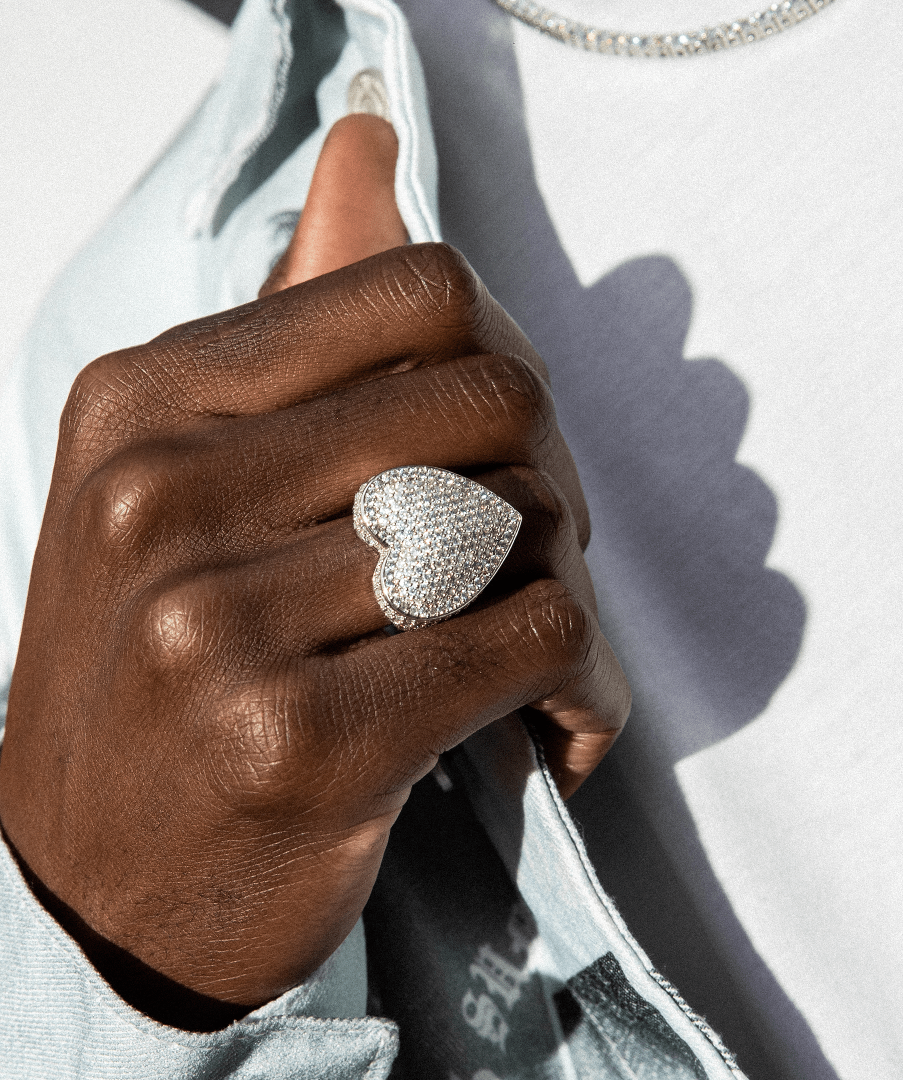 Our all new Iced Heart Ring features over 300 hand-set stones, crafted by the best stone cutters in the game. With Valentine's approaching in less than two weeks, it was only right we released this one.