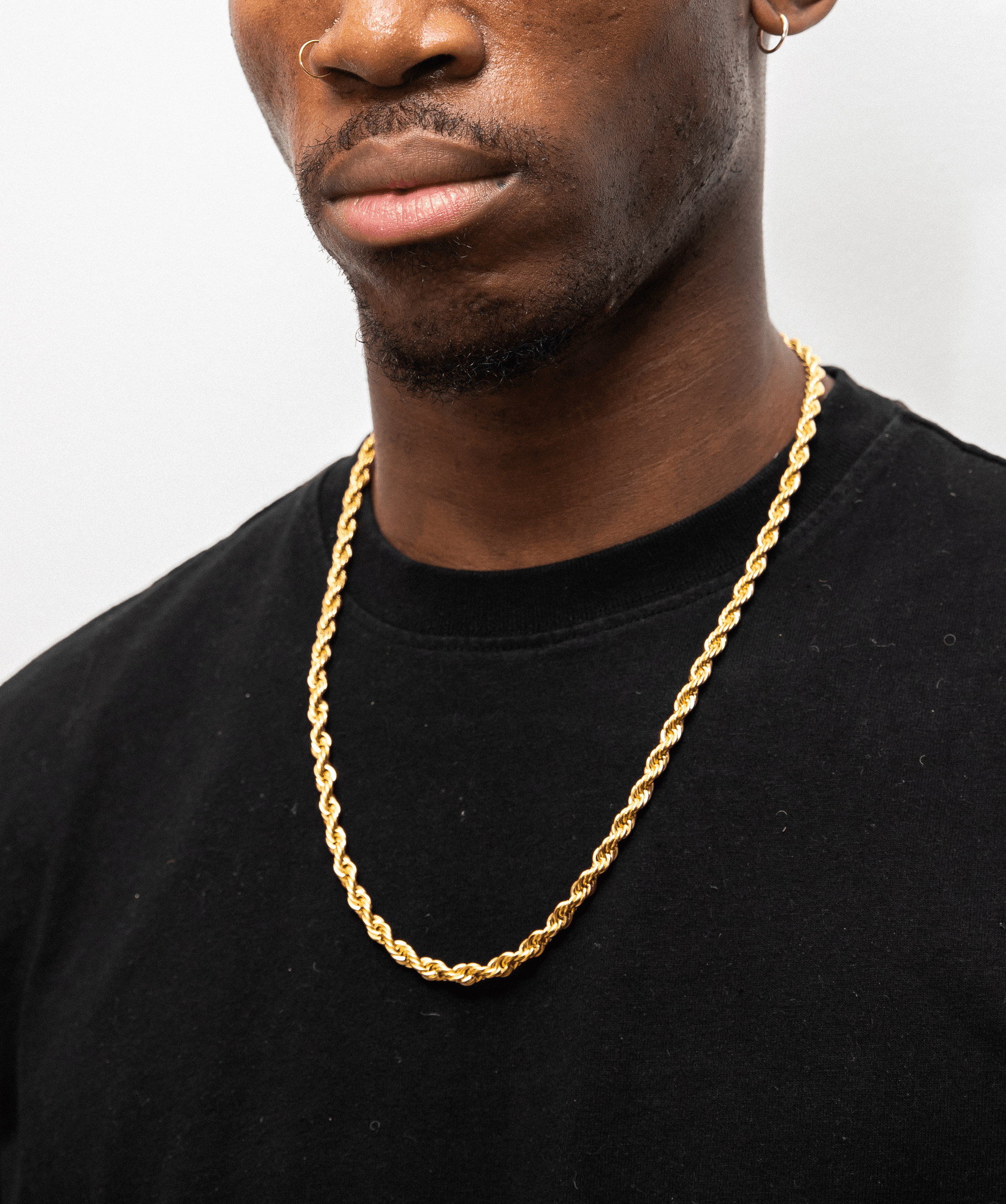 A bold take on a timeless classic, the 6mm Rope Chain showcases its signature twisted design, reflecting light from every angle. Versatile and effortlessly stylish, it’s the perfect foundation piece for any collection.